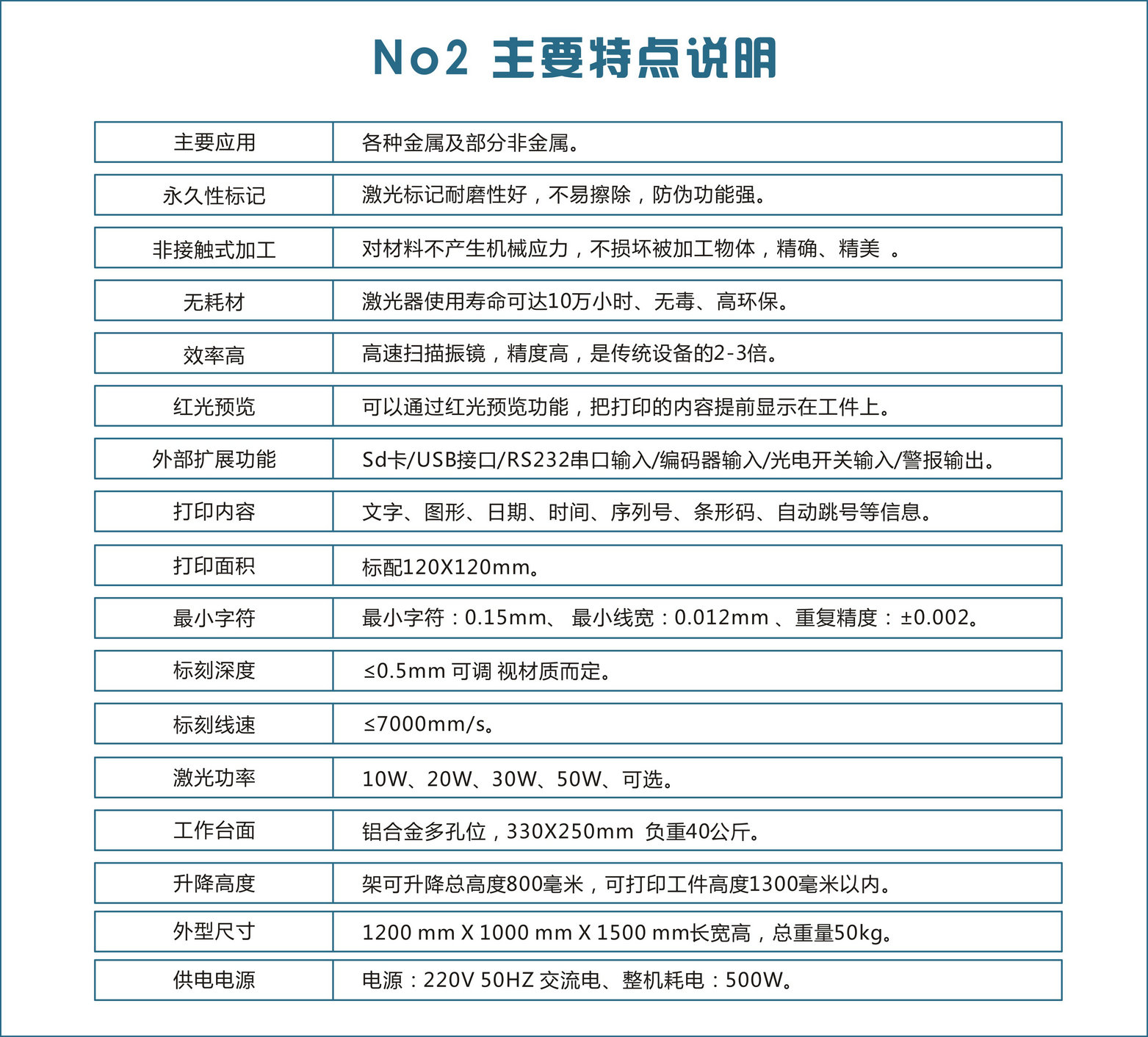 激光功率:10W或20W或30W或50W