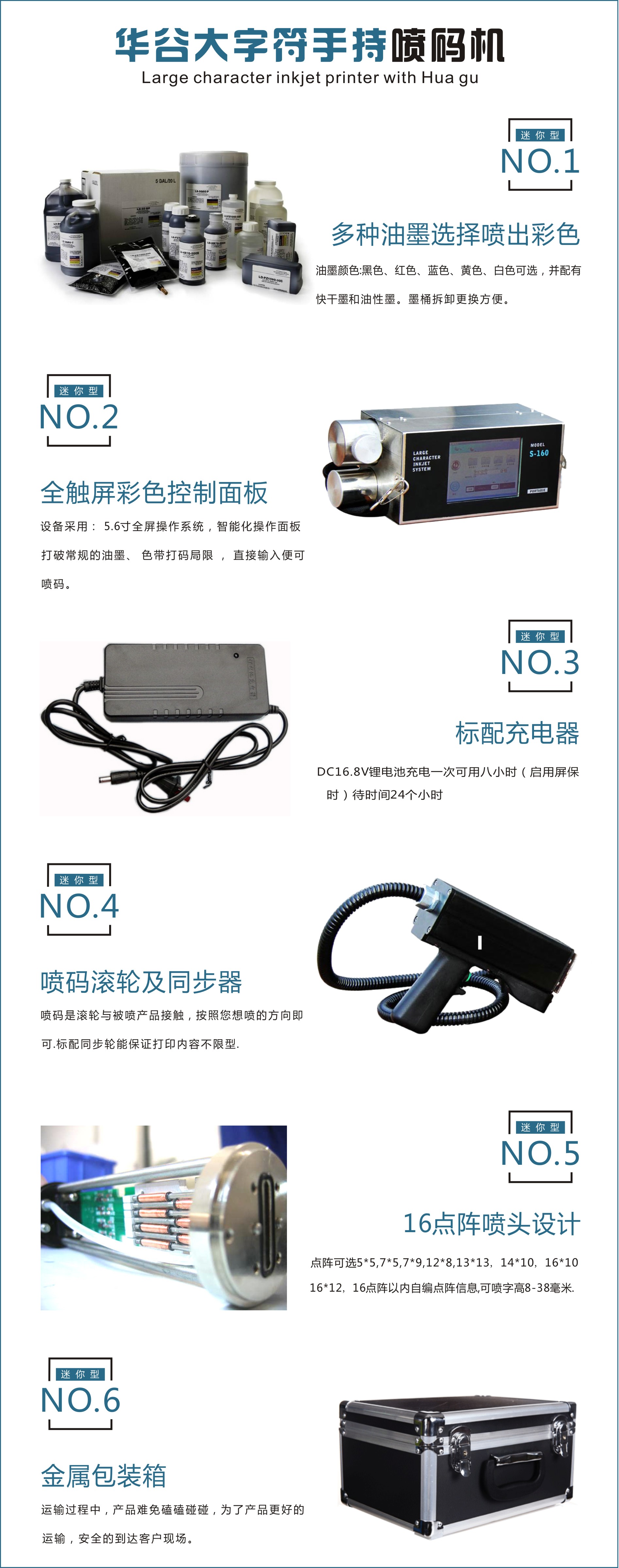 便攜式設(shè)計(jì),手持式操作,適用于各種不易移動(dòng)的產(chǎn)品噴碼。使用可充式鋰電池,一次充電可持續(xù)工作8小時(shí)以上。